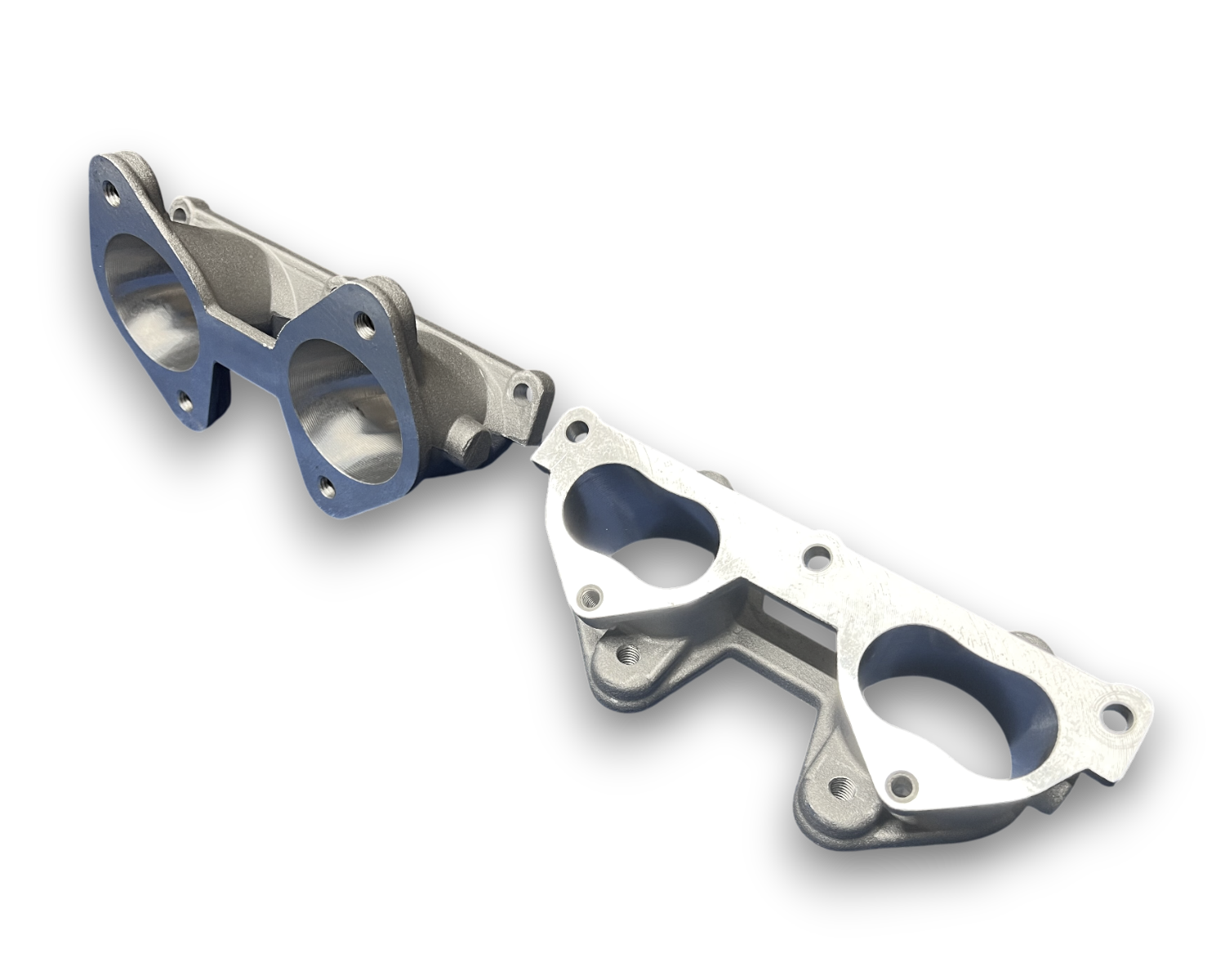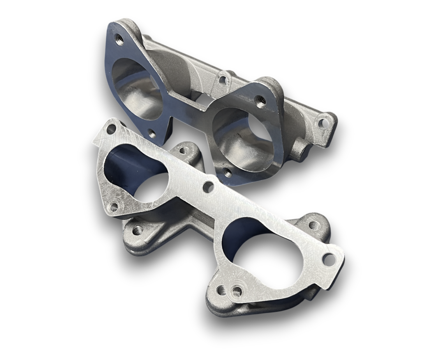 Recast from our own tooling, CNC machined and ported to match our cylinder head inlet face one end and 48mm Weber the other.